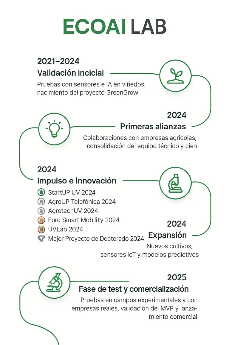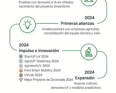 Nuestra experiencia abarca desde el desarrollo de modelos de inteligencia artificial y visión por computador, hasta la integración de sensores IoT y el análisis de datos en campo real. Trabajamos estrechamente con agricultores, cooperativas e instituciones para diseñar soluciones personalizadas que respondan a problemas reales y aporten valor medible.
